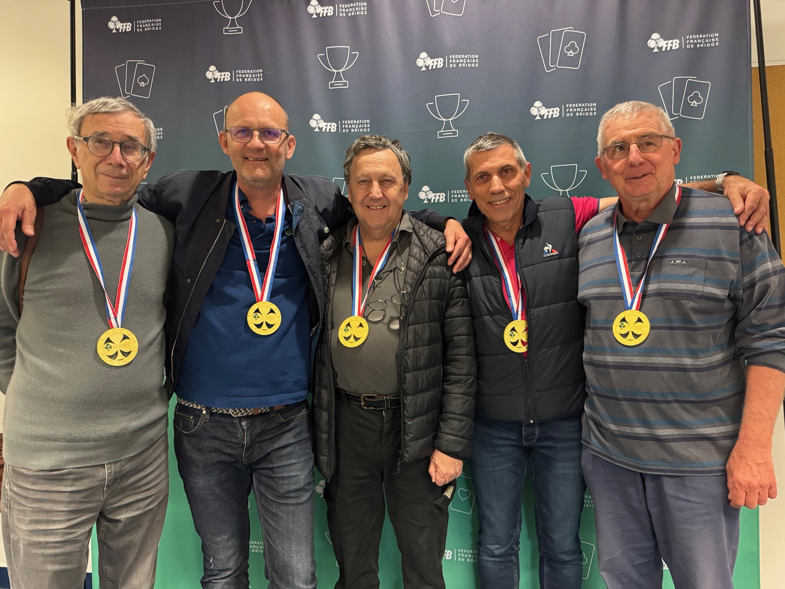 Et un nouveau titre de champion de France pour le comité Languedoc Roussillon en open 4 Division de Ligue avec l’équipe composée de Dominique Tournie, Yves Verneau, Yvan Villacampa, Jacques Rocaries, Bertrand Klis (Élie Golgevit absent sur la photo )
